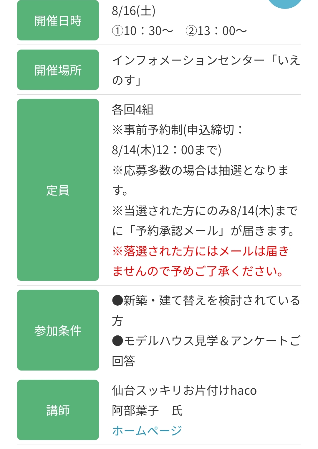 • 8月16日(土)整理収納セミナーのご案内