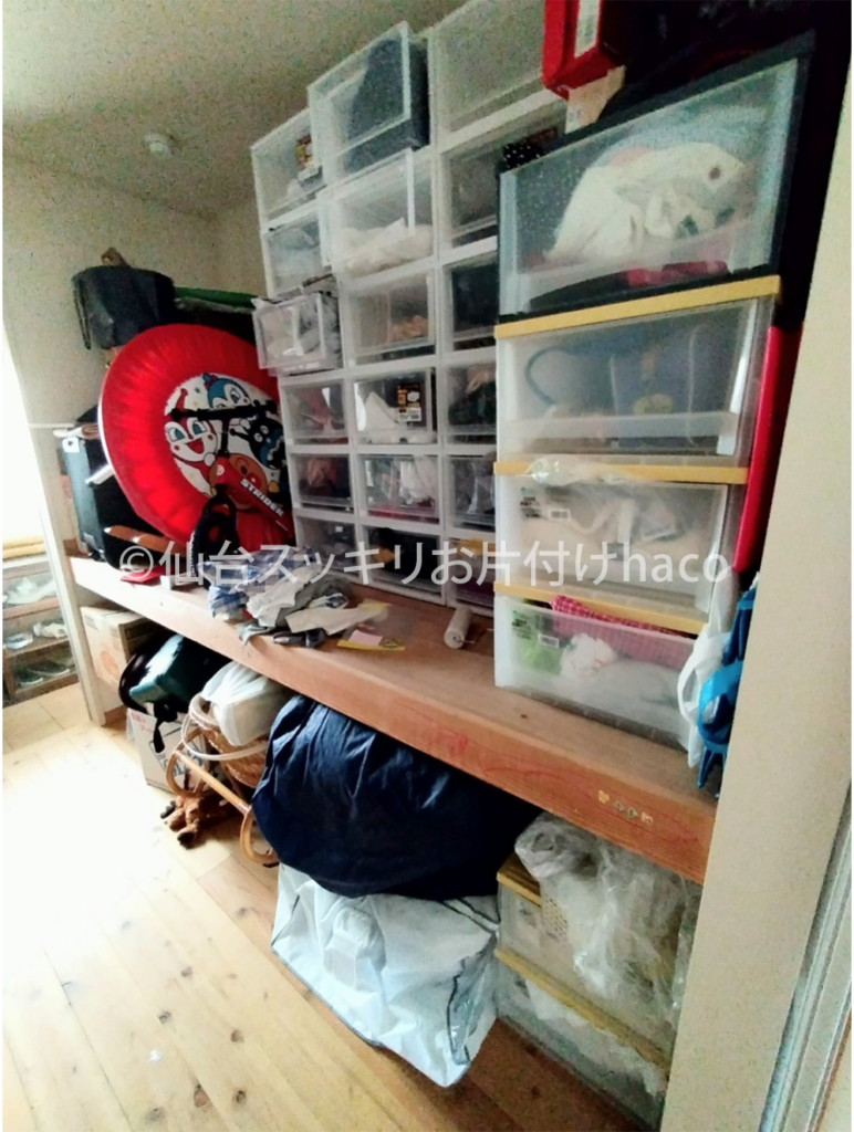 ビフォーアフター お客様から許可を頂いたビフォーアフターのみ 随時、増やしていきます! ファミリークローゼットfamily closet Before 大容量のファミリークローゼットですが引出しの高さが高すぎたり、出し入れのしにくさから片付けるのが億劫になってしまっているように感じました。 After まずはお客様の背の高さに合わせて引き出しの配置を変えました。下の段はお子様が自分で身支度を出来るように調整いたしました。極力、衣類とバッグ類だけをまとめて片付けやすいクローゼットにいたしました。 納戸部屋Storage Room Before ご実家にお住まいのためご両親やご兄弟の物も沢山ありました。お子様も大きくなってきたので活かせるスペースにしたいとのご希望でした。 After ご両親、ご兄弟の物は勝手に処分することはしません。ご判断しやすいようにわかりやすく配置しつつ、思い出の物やお子様のおもちゃ、シーズンオフの物などを置けるようにスペースを確保いたしました。 和室Japanese Room Before 主にご家族の衣類がある和室です。急遽、お泊りのお客様が来ることになったので片付けたい、というご依頼でした。 After ご家族の衣類は使いやすいように定位置を決めて収納しつつ、お布団も敷けるスペースを作りました。襖が無い方が圧倒的に使いやすいので後ほどロールスクリーンを付けることで外したままにしました。 クローゼットCloset Before ビフォーも、酷い散らかりではありませんが、何だか使いにくい、スペースが勿体ない気がする、出産後にストレス無く家事育児をできるようにしておきたい、とご相談いただきました。 After 高いところの引き出しは出し入れが億劫になり、散らかりの始まりになります。お客様の身長に合わせて下段も活用いたしました。出産後は物も増えますので、余白を多めに。右端には入院セットをまとめました。 玄関収納ENTRANCE STORAGE Before 大容量の玄関収納ですが、どう収納したらよいかわからなくていつもごちゃごちゃしてしまう、というお悩みでした。 After 玄関収納には靴以外にも靴磨きセットや虫除けスプレー系マスクやカギ類など、置いておくと便利な物が沢山あります。それに合わせて棚の高さを変えたりグループでまとめたりして使いやすくいたしました。お客様には『ここがストレスだったけど、開けるたびに嬉しい!』と喜んでいただけました。 食品収納food storage Before ある事情で食品ストックを大量にお持ちでした。 床置きになっているため、いざ使いたい時に探しにくくてストレスなので改善したい、というご希望でした。 After このような棚をご提案いたしました。カテゴリー別に収納して、探しやすく、出し入れしやすくなりました。食品ロスも、床置きもなくなり喜んでいただけました。 プレイスペース&収納庫play space&Storage Before 2才のお子様のプレイスペースなのですが、どうしても床に物が出てしまう、安全に遊ばせらるようにしたいとのご希望でした。 After このお部屋の収納庫の使い方がポイントになります。現在は使っていない物が収納されていましたので、それらは将来の子供部屋に移動。現在使う物だけを、出し入れしやすく収納できるようにして、安全なスペースができました。 リビング収納庫Living Storage Before リビングをスッキリ維持するためには、リビング収納の使い方が肝になりますが、ご自身で突っ張り棚で対応されていたため、使いにくいというお悩みでした。 After 日常的にストレスなく使いやすい方が良いのでは?とご提案させていただき、工務店さんに稼働棚を付けていただきました。 横向きに収納していたのが正面で収納出来るようになり、動作的にもストレスなく、維持しやすくなりました。 (このように工務店さんをご紹介することもできます) パントリーPANTRY Before キッチン用品や食品の他にも多種多様なハンドメイドの材料が詰め込まれていてどこから手をつけていいのかわからないという状態でした。 After 一度全部出して、要・不要、種類別、使用頻度別、と徹底的に分類し、動線を考えて収納しました。 同一カラーで統一感を出すよりも、お客様のお好みでカラフルで温かみのある感じに仕上げました。 お客様と2人で6時間で終わりました。 キッチンKITCHEN Before 物は多くはないのですが、同じ種類の物がキッチン内のあちこちに点在していたため、探し物が多く、食品の賞味期限も切らしてしまいがちでした。 After 同じ種類の物はグループごとにまとめ、使いやすく、ご家族もわかりやすく、掃除もしやすい衛生的なキッチンになりました。 ワンルームマンションone-room Before 書類、本類、衣類、雑貨等の定位置がなく部屋中に溢れている状態でした。 After 不要な物もかなりあり、今回をきっかけに手放すことができました。 必要な物を種類別、頻度別に分けて定位置を作り、スッキリとした空間にすることができました。 キッチン&リビングKITCHEN&Living Before お引越し後、ご自身で収納&レイアウトしてみたけれど、何
